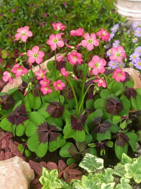 Късметлийска четирилистна детелина.Цъфти от юни до началото на зимата. Цветовете са обагрени в нежно розово. Някои от видовете оксалис се затварят вечер и при облачно време и се отварят през деня, особено когато е слънчево.