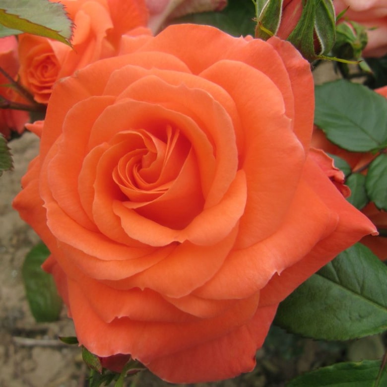 | Чаено-хибриден сорт с изпъкващ оранжев цвят и силен аромат. Височина 60-80см. |