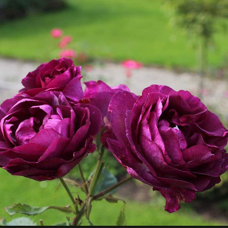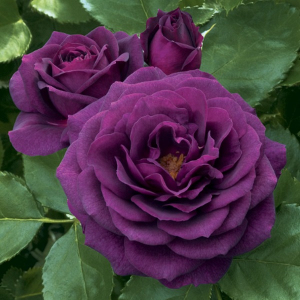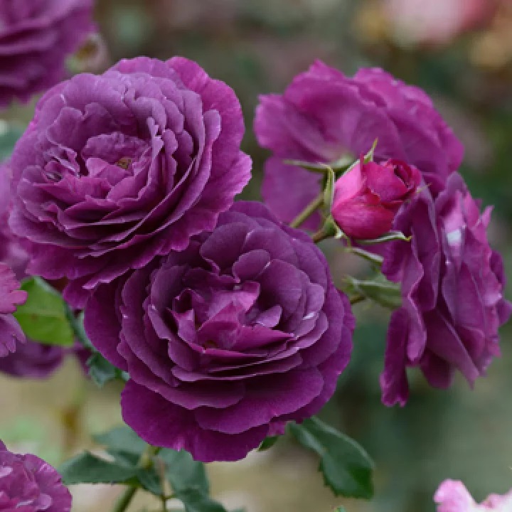 | Флорибунда с лилави цветове и умерен аромат. Растежът е на клъстери в малки групи. Цъфти на вълни през целият вегитационен период. Височина 120см., ширина 90см. |